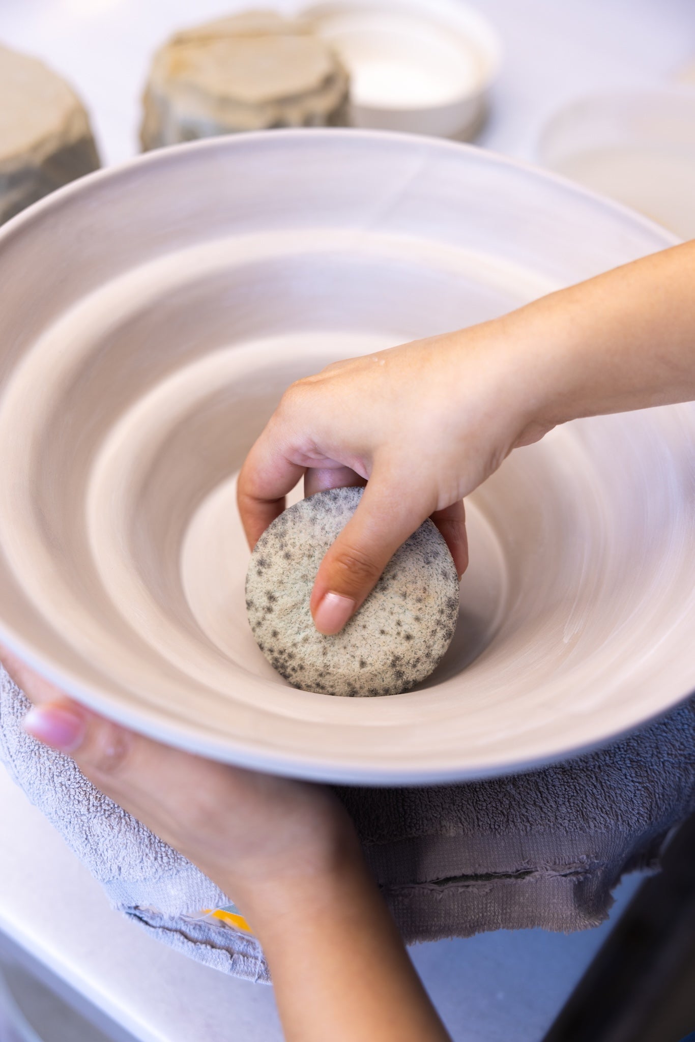 Every piece at Creathings begins with porcelain slip — a fine liquid clay that we carefully pigment to achieve the colors we envision. This way, each shade is not just applied on the surface, but becomes part of the very body of the porcelain.