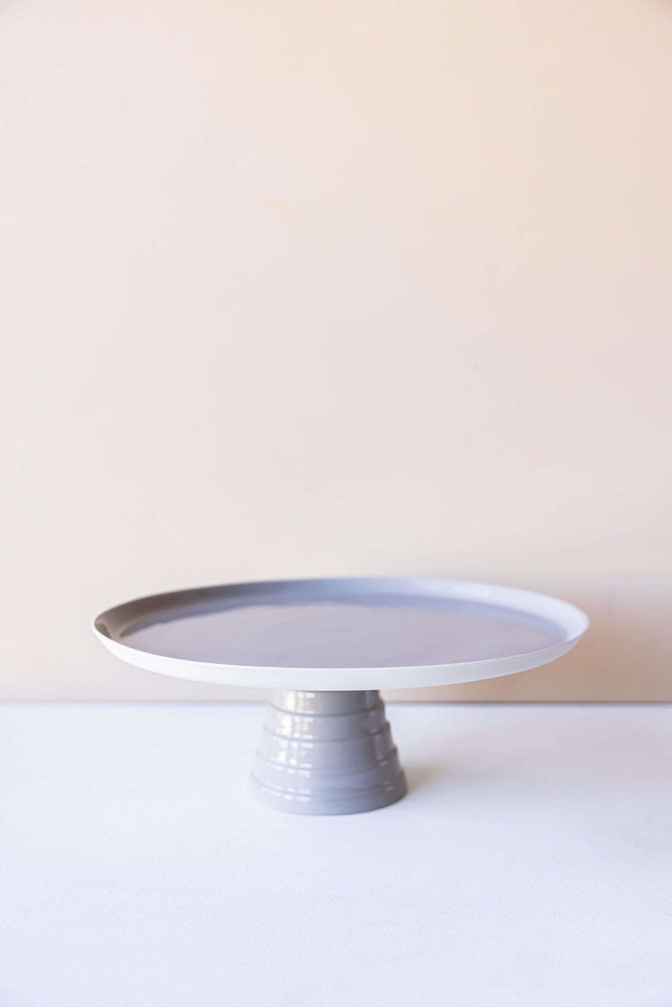 The wide, flat top is crafted from naturally pigmented porcelain, its proportions make it perfect for serving cakes, tarts, mezze, or as a simple centerpiece.